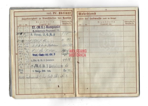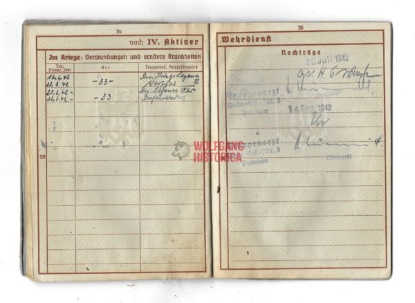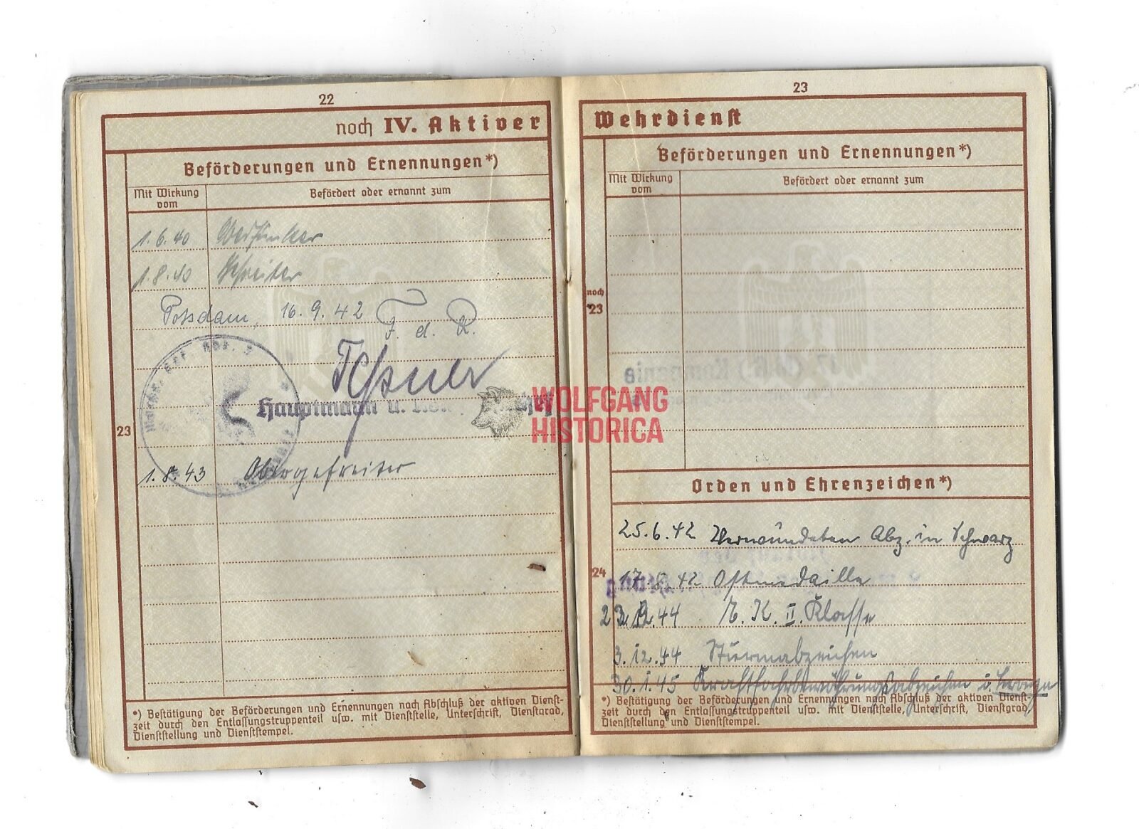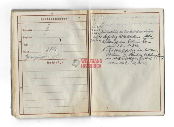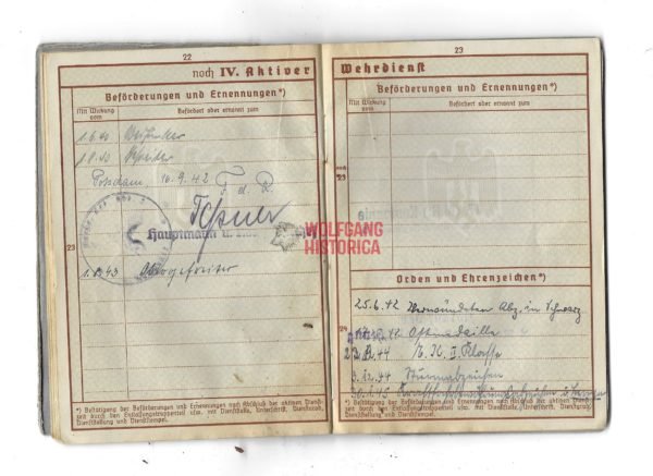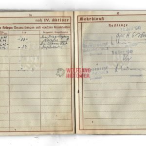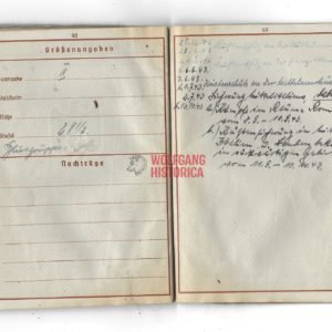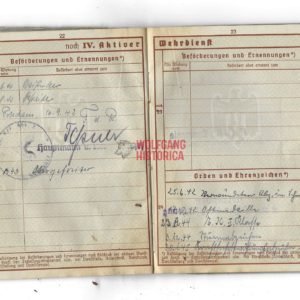 Throughout his service he earned 5x Awards! 3 of them on the Western Front: Eisernes Kreuz 2. Klasse (Iron Cross 2nd Class) on September 23, 1944 (if I see it clearly), the Allgemeines-Sturmabzeichen (General Assault Badge) on December 3, 1944 and the Kraftfahrbewährungsabzeichen in Bronze (Driver’s Profiency Badge in Bronze) on January 30, 1945!