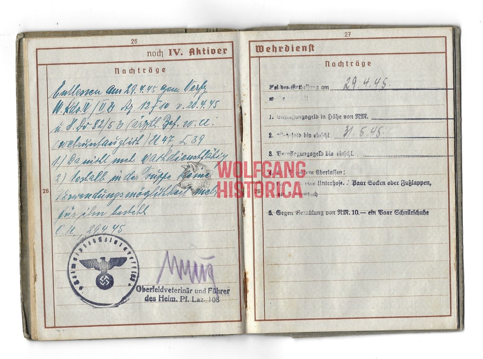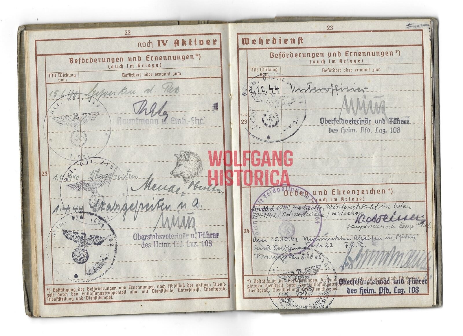 Wehrpass Art.Rgt.248 & Inf.Rgt. 442 (168.Inf.Div.) & Heimat-Pferde-Laz. 108 (3x Awards)