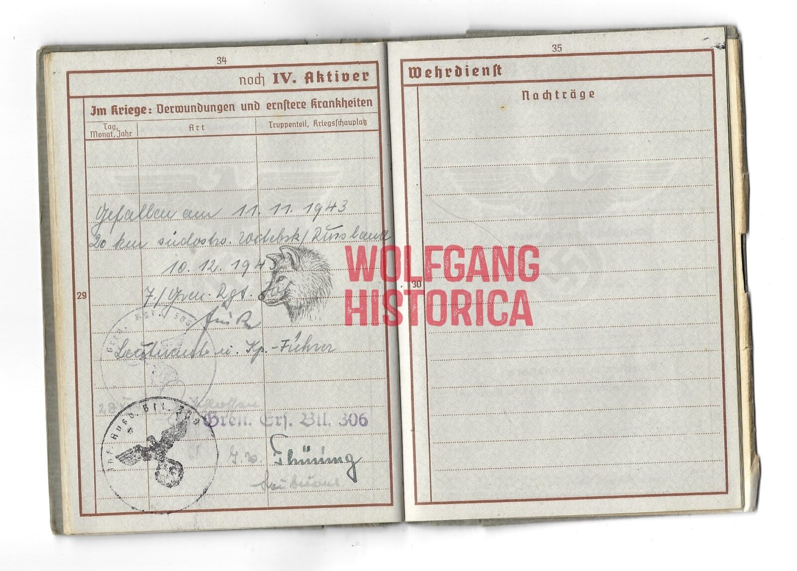 Wehrpass – Grenadier-Regiment 306 (211.Inf.Div.) (KIA)
