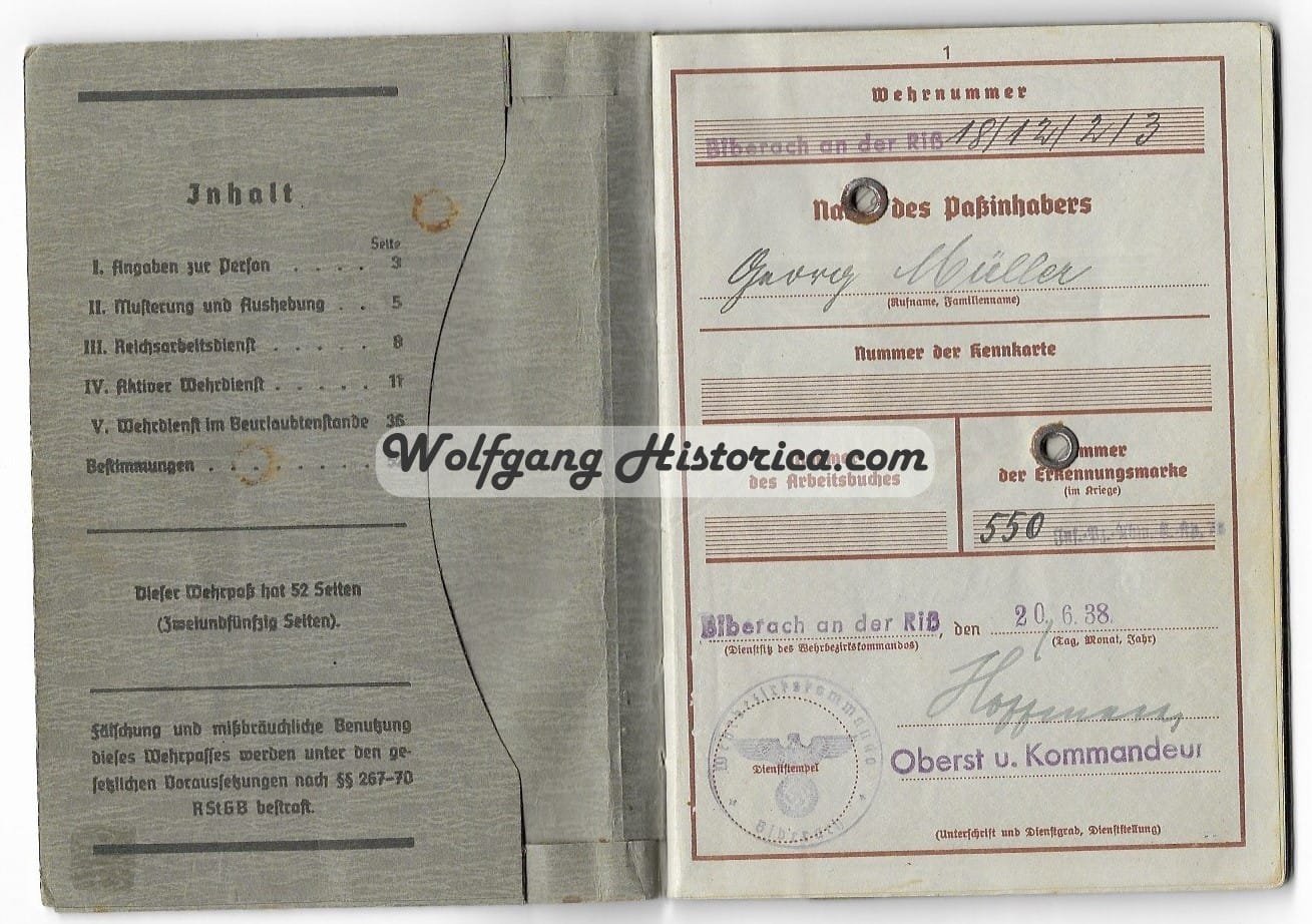 Wehrpass – Jäger-Regiment 56 (5. Jäger-Div.) – DIED