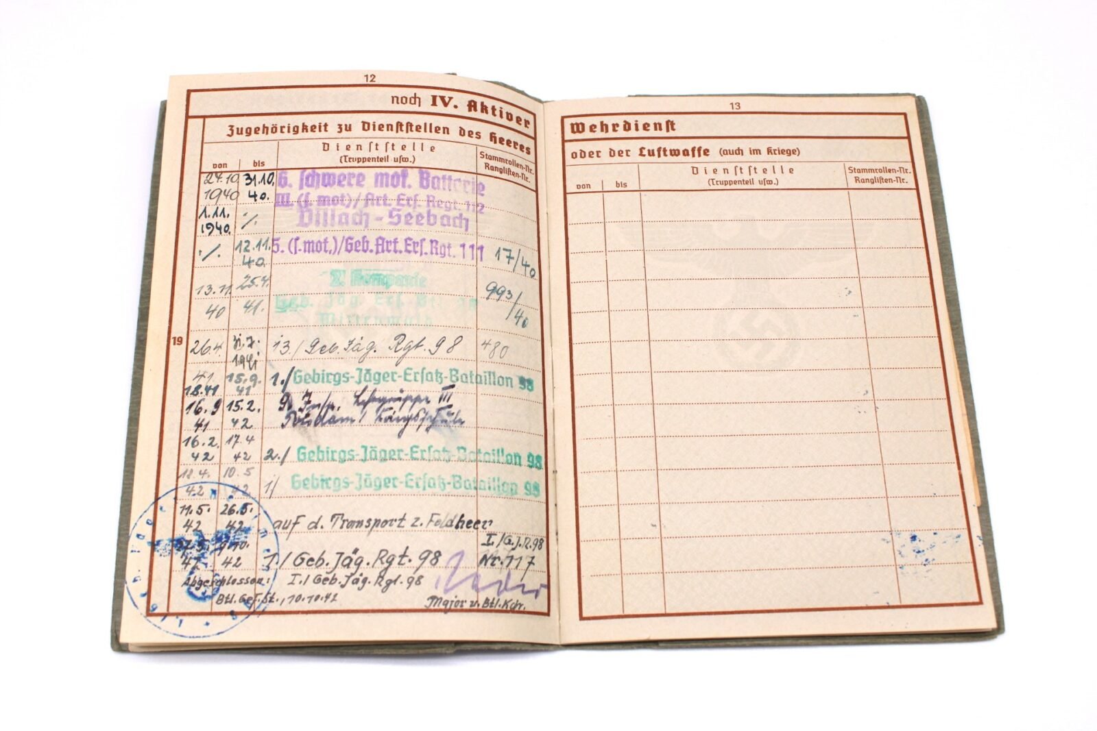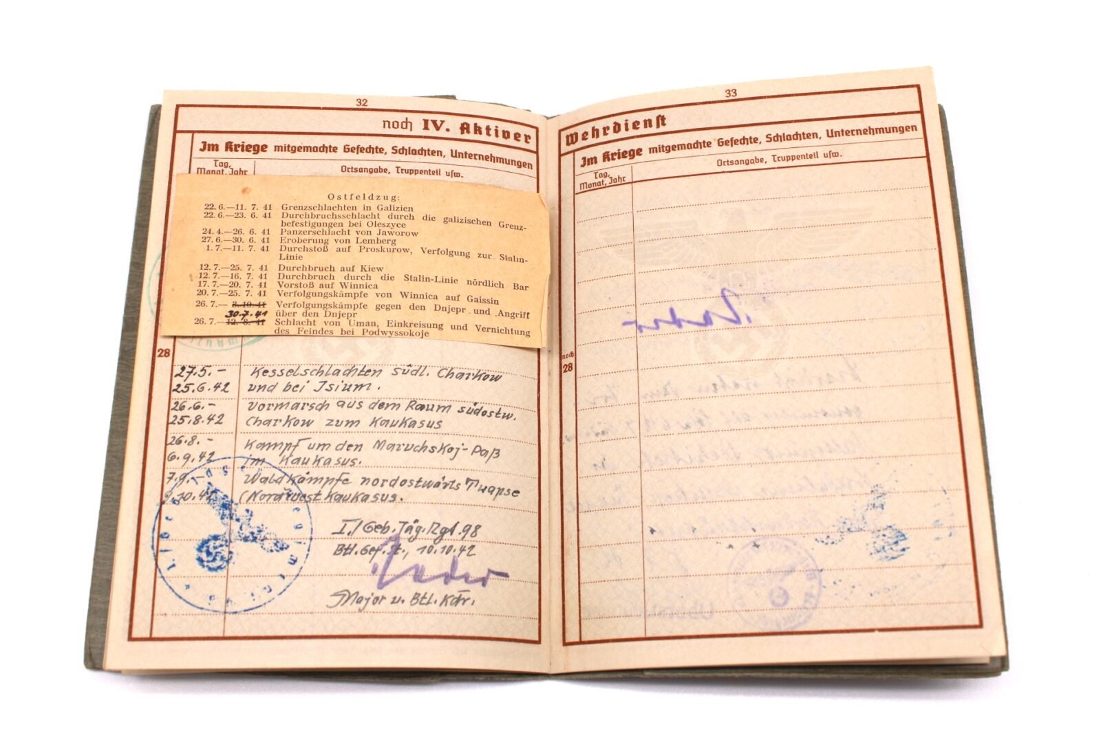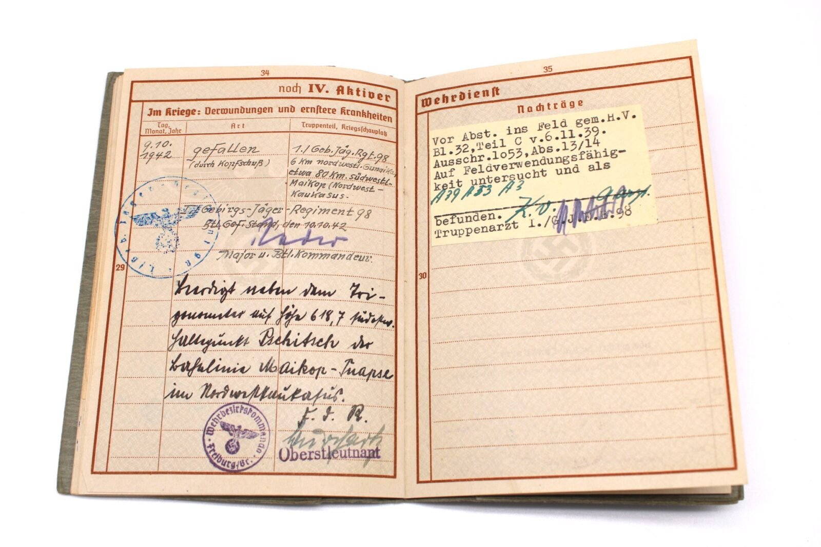 Wehrpass Oberleutnant Geb.Jäg.Rgt.98 (KIA Maikop) (3x Awards)