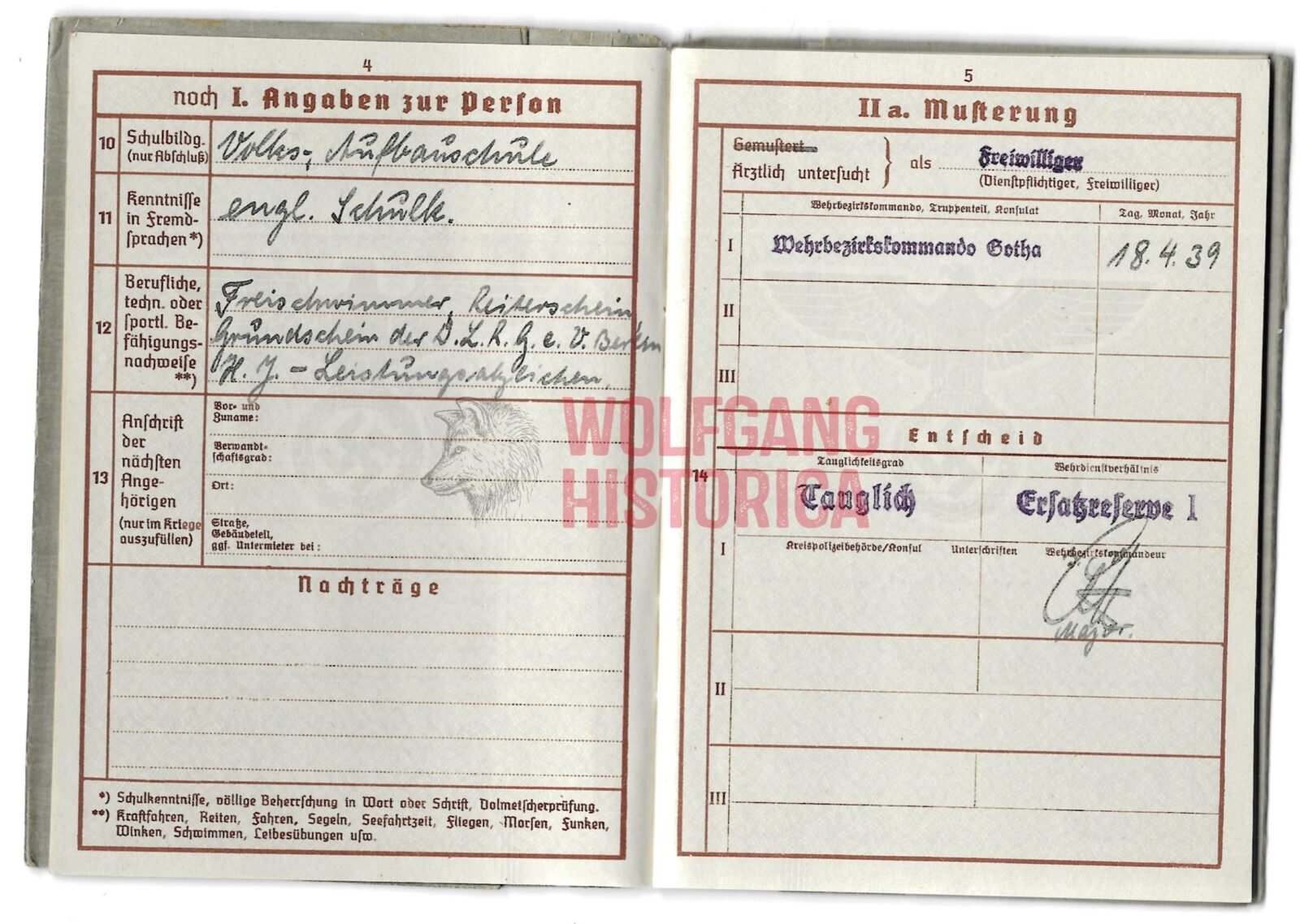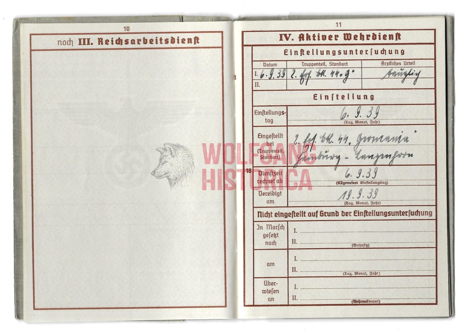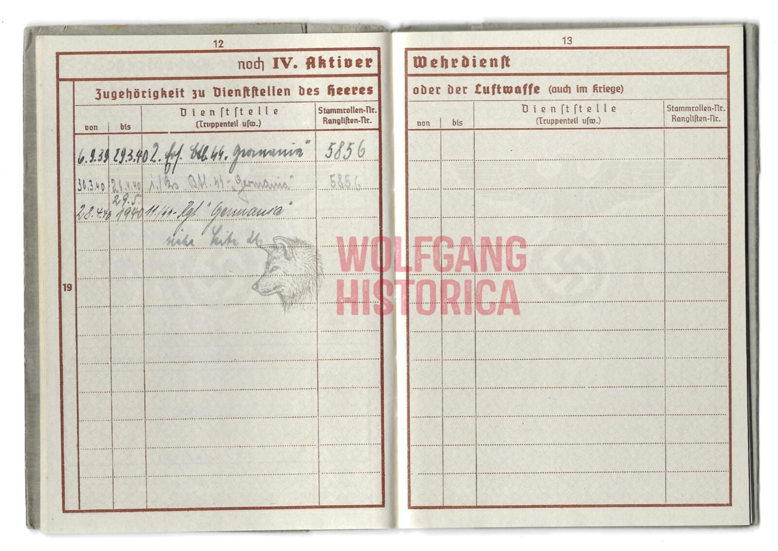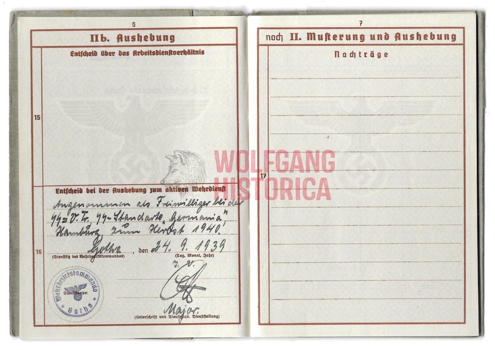Wehrpass SS-Regiment “Germania” – Died in June 1940 (Seriously wounded May 29, ’40)