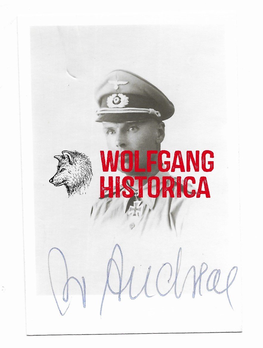 Original Postwar Signature on a Postwar Photo of Wolf Andreae. Oberst Wolf Andreae (13.07.1898 † 18.12.1991) earned the Ritterkreuz des Eisernen Kreuzes on June 24, 1944 as Oberst und Kommandeur in the Werfer-Regiment 71 of the Werfer-Brigade 5. Small size.
