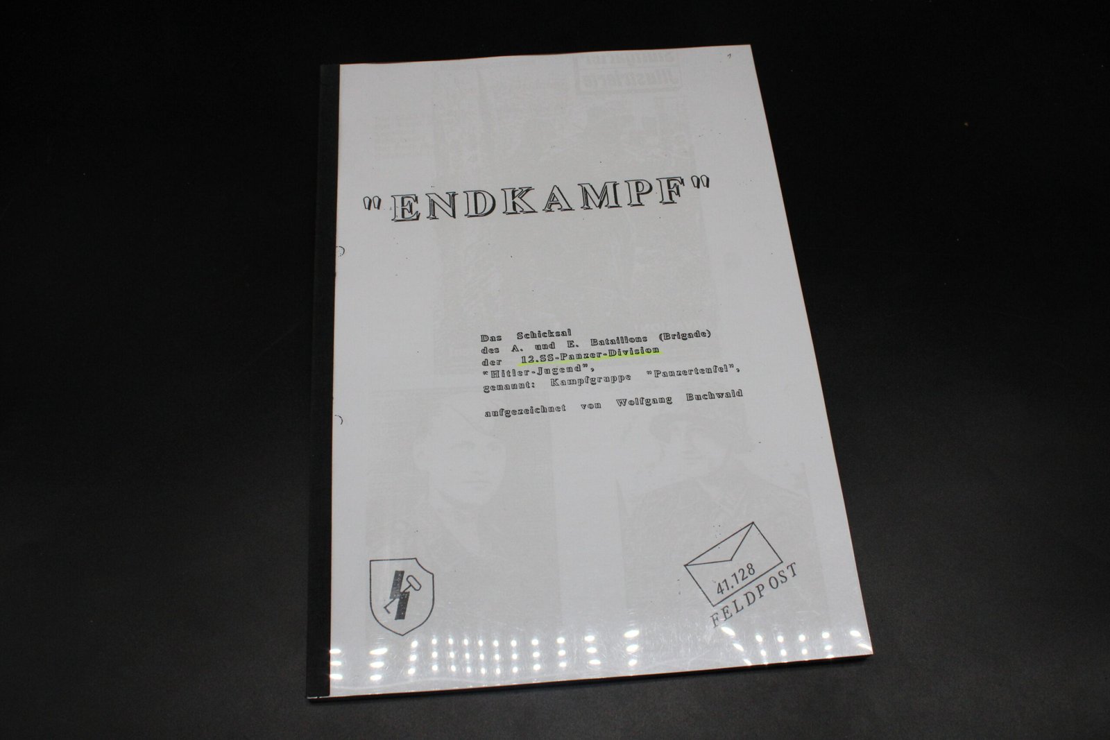 Wolfgang Buchwald – “Endkampf” Das Schicksal A. und E. Bataillons der 12. SS-Panzer-Divisions Hitlerjugend gennant Kamfgruppe “Panzerteufel”. A4 size.